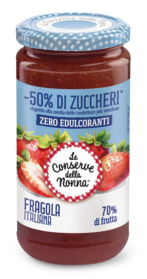 Le Conserve della Nonna, da sempre attenta a soddisfare le richieste del pubblico, presenta la nuova Linea Confetture -50% Zucchero, una proposta che intercetta il segmento “light”, in deciso trend positivo. Meno zucchero, più sostanza per questa nuova proposta che garantisce il 50% di zucchero in meno rispetto alla media delle confetture più vendute, senza ricorrere ad edulcoranti. Una scelta chiara e distintiva: lista ingredienti corta e pulita, solo frutta italiana (ben il 70%) e poco zucchero.