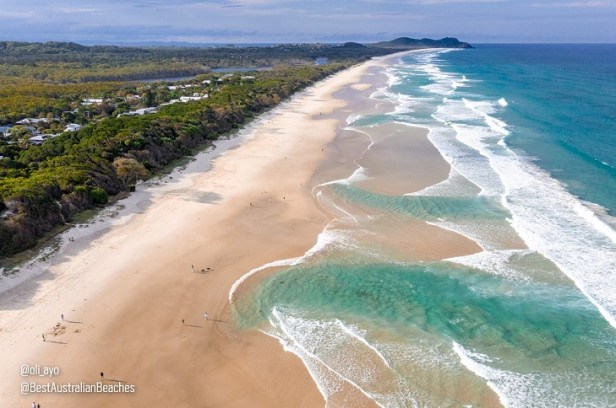 Tallow Beach, nell’Arakwal National Park a circa 3,2 km dal centro di Byron Bay, è una lunga e suggestiva spiaggia che invita a stendersi al sole, osservare uccelli marini come aquile e falchi pescatori, e ammirare le balene in migrazione durante la primavera e l’inverno. Popolare per il surf e la pesca in spiaggia, offre spazi ampi e incontaminati per rilassarsi o esplorare la natura.