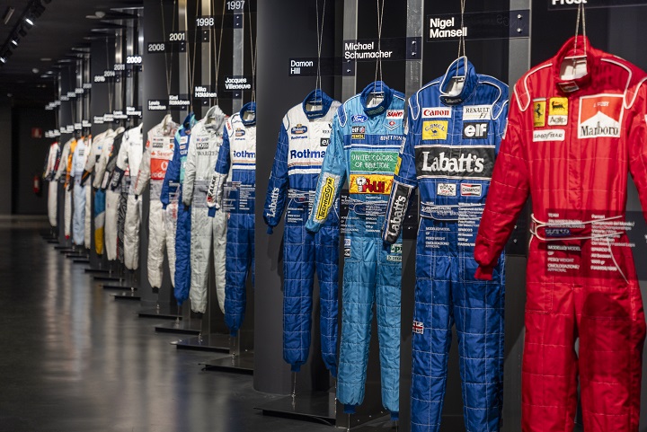 L’inaugurazione della mostra è stata l’occasione per presentare una nuova sezione permanente del Museo dedicata alle “stoffe dei campioni”: un’esposizione di ventuno tute originali appartenute ad alcuni dei più grandi protagonisti della Formula 1, dagli anni Ottanta a oggi, realizzate da Sparco, eccellenza del territorio piemontese. L’azienda torinese – che si appresta a celebrare i suoi 50 anni nel 2027 – ripercorre la propria storia di innovazione e progresso tecnologico in materia di tessuti ignifughi, con una carrellata di tute indossate – tra gli altri – da Nelson Piquet, Alain Prost, Michael Schumacher, Mika Häkkinen, Lewis Hamilton, Fernando Alonso, fino ai più recenti campioni come Max Verstappen e Lando Norris. Un percorso che testimonia una crescita continua, espressione del know-how italiano di una realtà manifatturiera che, nata dall’intuizione di rendere il motorsport una disciplina più sicura, si è affermata come leader mondiale nel racing equipment e non solo.
