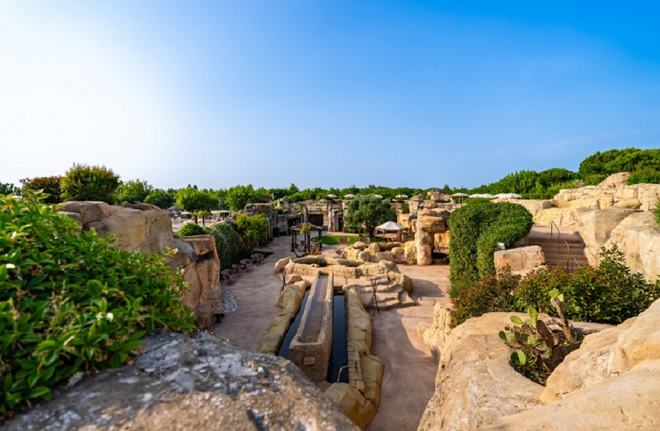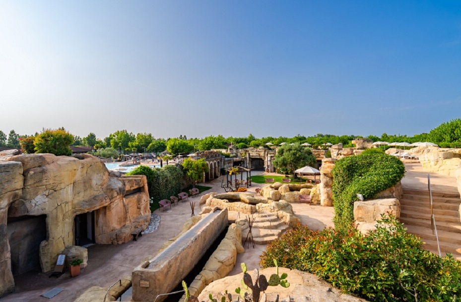 Accanto all’attività terapeutica, il centro è dotato di un parco termale esterno, noto come Giardini del Benessere, composto da vasche a temperature differenziate, percorsi vascolari, idromassaggi e aree di sosta immerse nel verde. Gli spazi sono integrati nel paesaggio delle Valli di Comacchio e pensati per un utilizzo stagionale, in particolare nei mesi primaverili ed estivi.