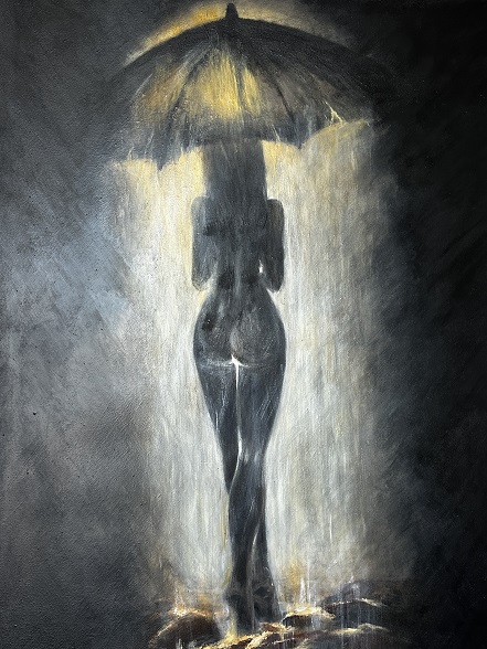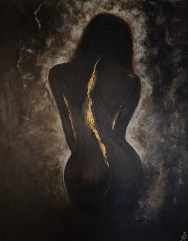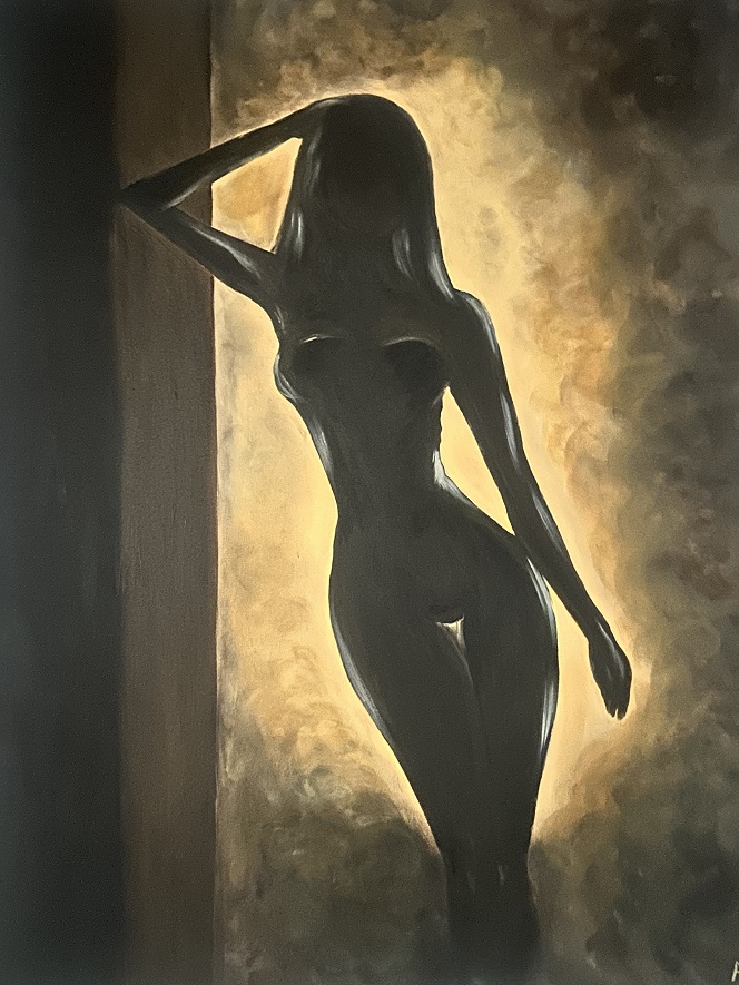 Qui la pittura incontra la fotografia in una dimensione ibrida: il corpo dell’artista non è più soltanto soggetto, ma diventa superficie, materia e linguaggio. Anfissa si trasforma in Venere – non rappresentata, ma evocata – attraversata dalla luce, frammentata, quasi dissolta. Le immagini, ambientate tra cavità rocciose e aperture sul mare, richiamano suggestioni arcaiche e rimandi al mito. La sovraesposizione diventa gesto estetico: una “bruciatura” controllata che non cancella, ma apre nuovi livelli di lettura. La figura femminile emerge e scompare, come un’apparizione mai completamente rivelata. A dialogare con queste fotografie, la stessa Anfissa Vassé presenta una serie di dipinti che proseguono e amplificano la narrazione, creando un flusso continuo tra gesto pittorico e immagine fotografica. In questo processo, la pittura si configura come riflesso e reinterpretazione dell’immagine fotografica: un’indagine sul modo in cui l’artista percepisce se stessa non solo come autrice, ma come parte integrante dell’opera di un altro artista. Il lavoro diventa così un doppio specchio – tra fotografia e pittura, tra soggetto e visione – dove l’identità si dissolve e si ricompone.