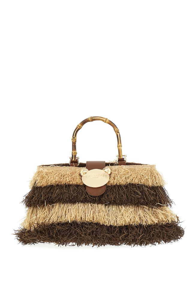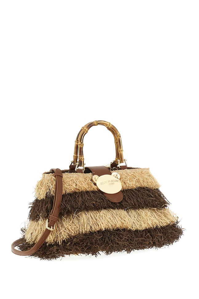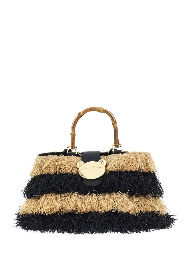 Per l’estate, RIAD si conferma una delle borse più amate di RUE MADAM PARIS per chi ricerca eleganza, libertà e personalità. Ogni dettaglio racconta il viaggio stilistico del brand: dalle frange naturali, che donano movimento e leggerezza, ai manici in bamboo, evocativi di atmosfere esotiche e raffinate, fino all’iconica chiusura orsetto, simbolo di un’originalità giocosa e contemporanea.