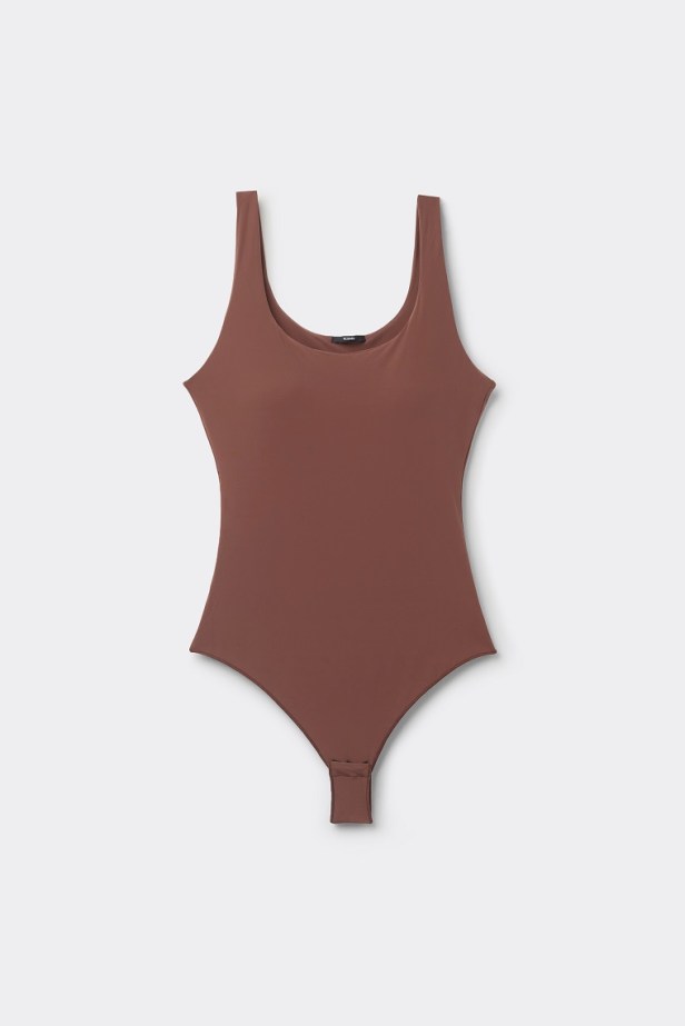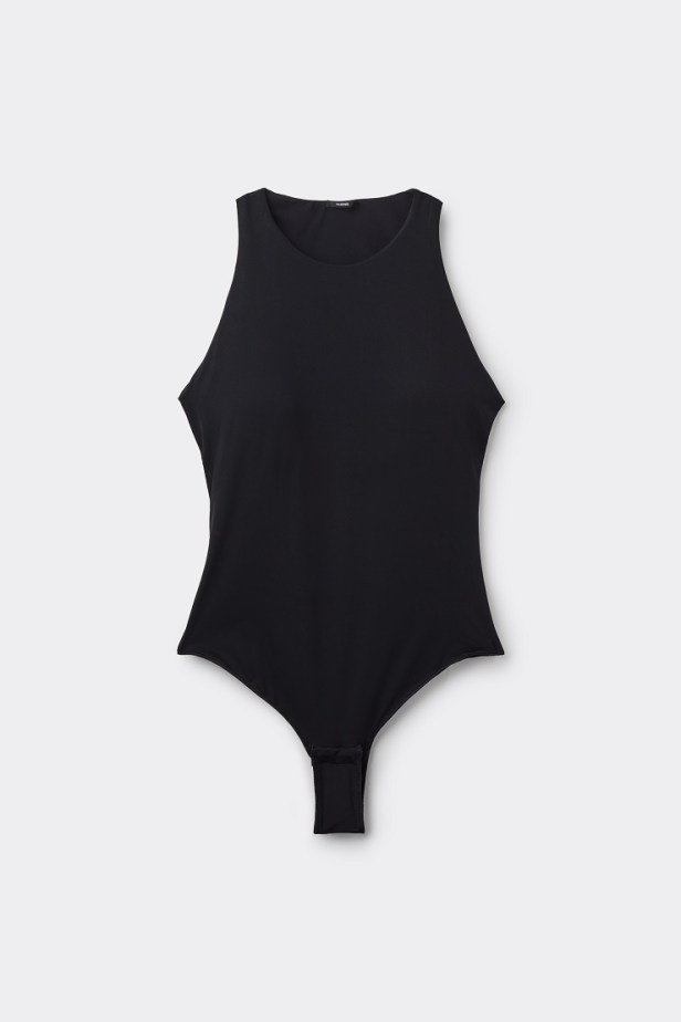 La proposta della collezione si componedi due body, uno a spalla larga scollo tondo e uno all’americana, che esplorano geometrie perfette per look di tendenza.