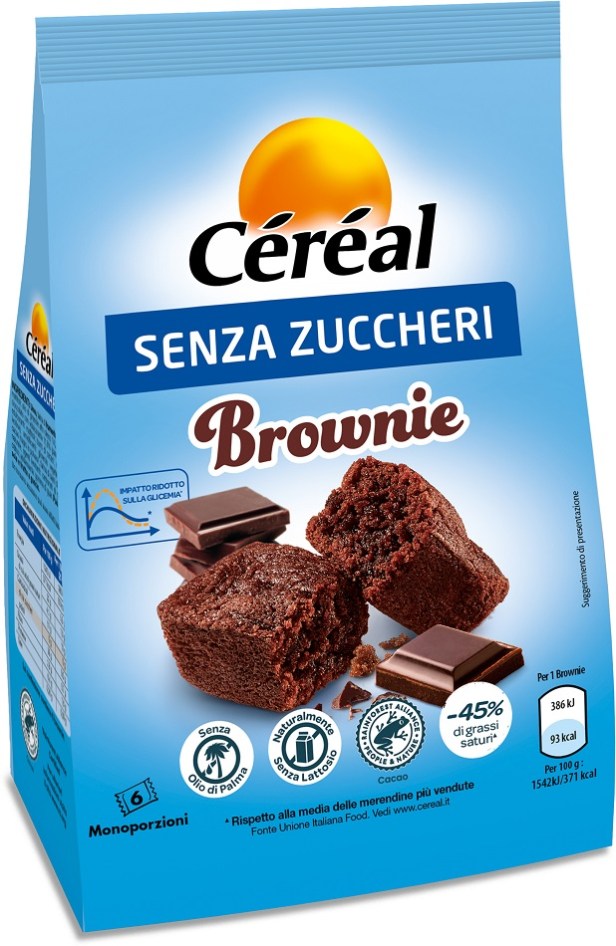Céréal, marchio specializzato in alimentazione salutare e, in particolare, in prodotti “free from” continua ad ampliare la sua offerta con una golosa novità: i Brownie Senza Zuccheri. Questa morbida novità si aggiunge a un’ampia gamma di biscotti, merendine e barrette, pensati da Céréal per venire incontro a chi vuole o deve ridurre l’eccessivo consumo di zuccheri quotidiano.