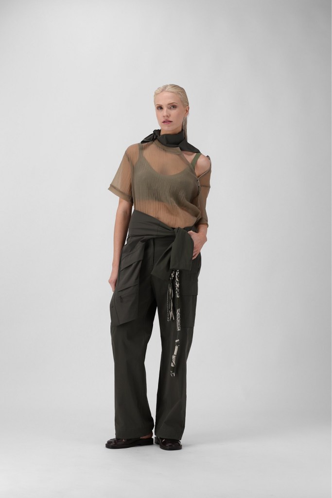 La struttura tridimensionale del tessuto favorisce la libertà di movimento e contribuisce a mantenere una vestibilità sempre ordinata, mentre la finitura anti-piega ne facilita la gestione anche in viaggio. Il risultato è una proposta che unisce funzionalità e raffinatezza, pensata per accompagnare ogni momento della giornata con naturalezza.