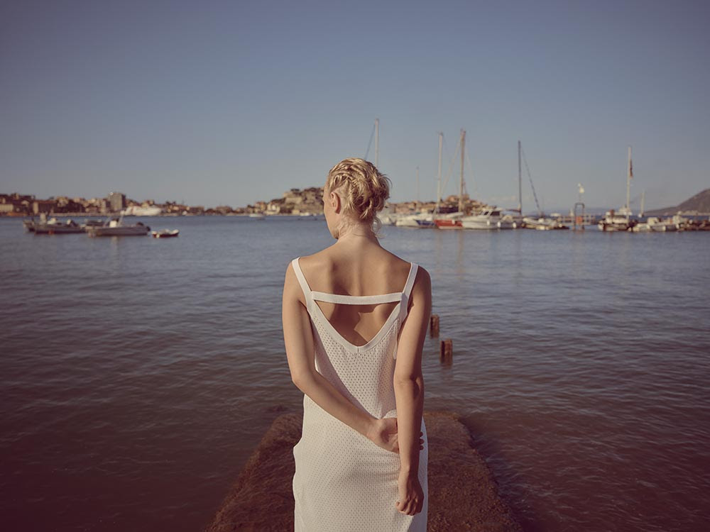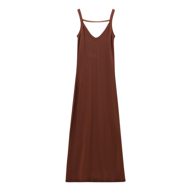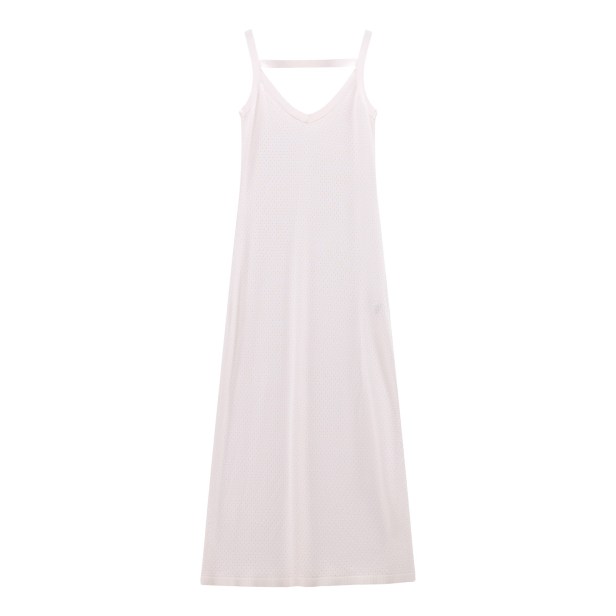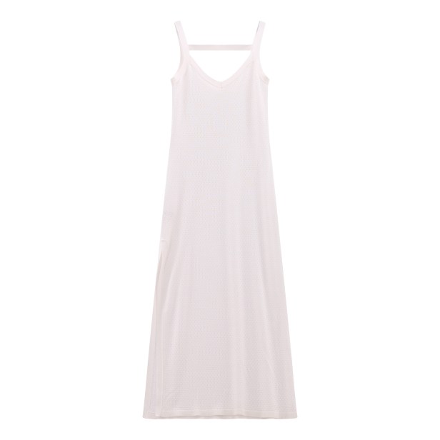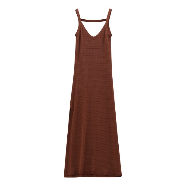 Abito lungo in maglia tecnica 3D di viscosa e nylon, caratterizzato da spalline sottili, scollo a V e spacco laterale che slancia la figura. La costruzione del filato, compatta ma flessibile, accompagna le forme senza segnare e mantiene l’aspetto ordinato nel tempo. Un modello essenziale, pensato per valorizzare la silhouette con naturalezza e garantire una resa sempre curata anche dopo lunghi spostamenti.