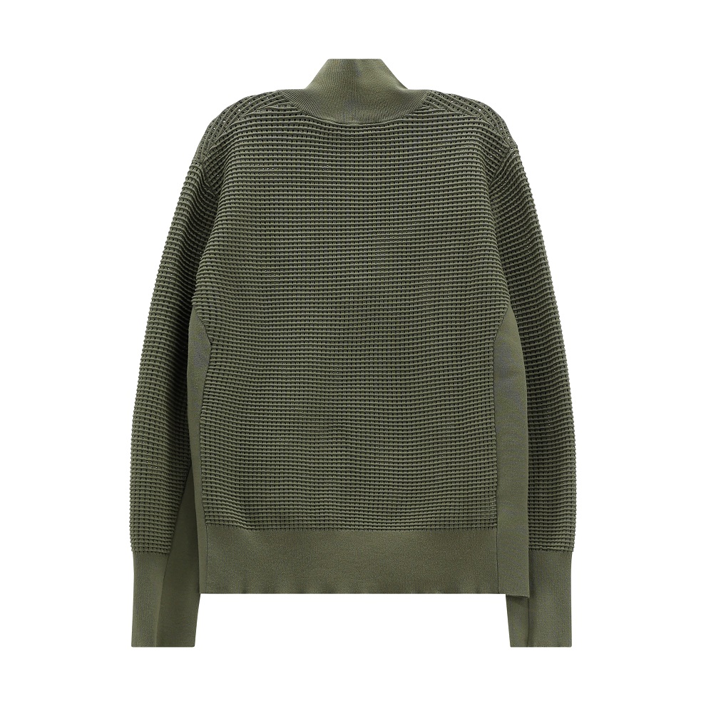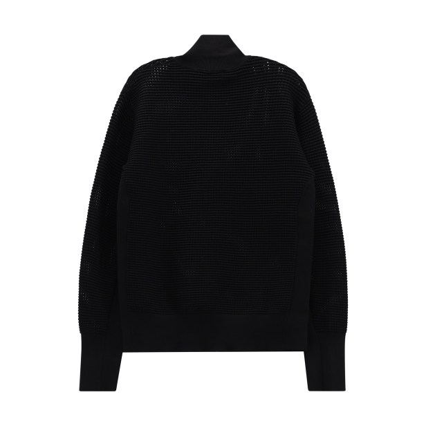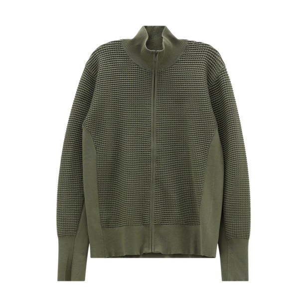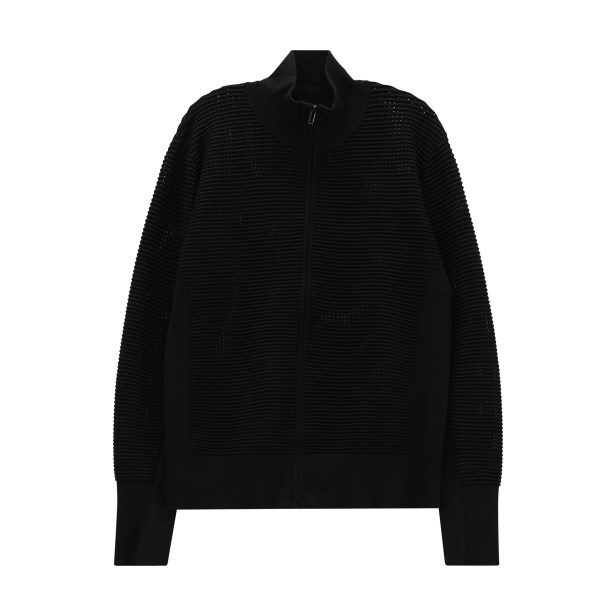 Giacca in maglia tecnica 3D realizzata in poliestere e viscosa, progettata per unire precisione estetica e funzionalità. Il colletto alto e la vestibilità regular-slim definiscono una linea pulita, mentre la costruzione differenziata della maglia accompagna i movimenti senza costrizioni. La componente cellulosica del filato favorisce la gestione del calore corporeo e una naturale elasticità, rendendo il capo adatto a un utilizzo dinamico e continuativo.