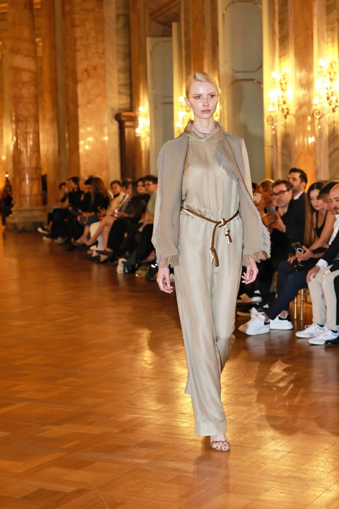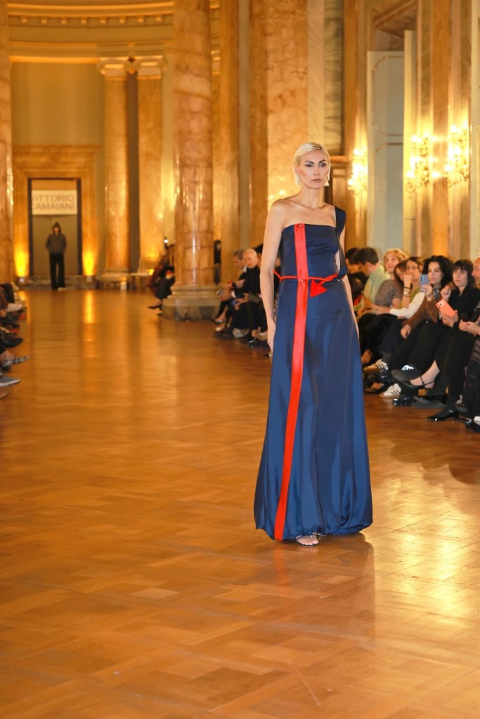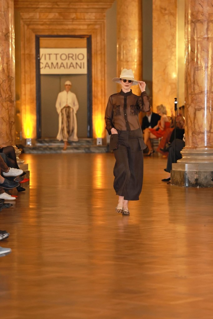 La nuova collezione Spring/Summer 2026 di Vittorio Camaiani intitolata “Senza Confini” è stata svelata domenica 12 aprile 2026 attraverso una sfilata alla Galleria del Cardinale Colonna di Palazzo Colonna. La settecentesca dimora nobiliare per l’occasione ha festeggiato il quarto anno della sua rinnovata gestione.