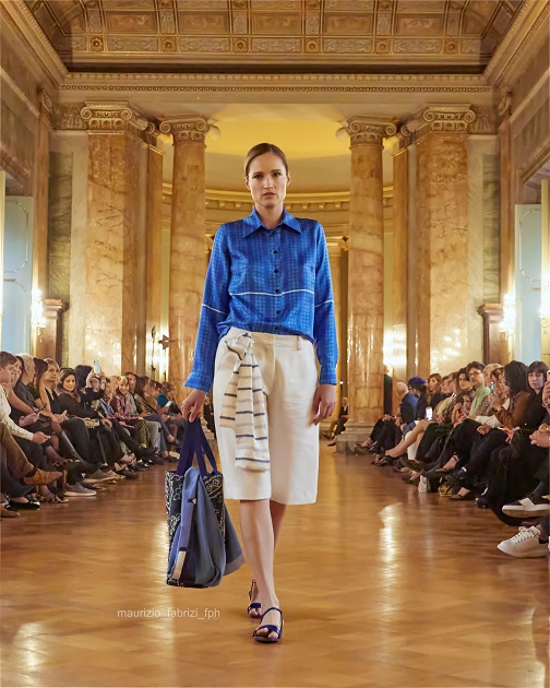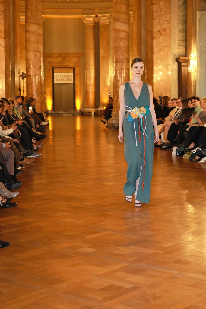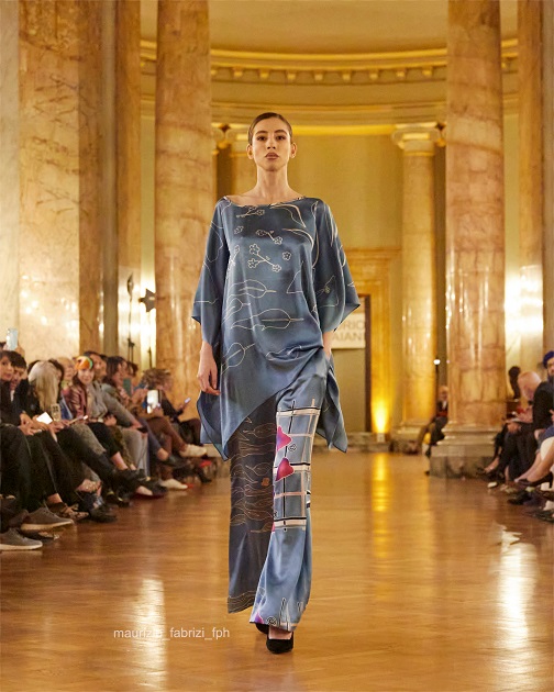 Camaiani, nonostante questo tempo storico dominato da conflitti e disparità, immagina la moda come il possibile fil rouge che in realtà unisce, mette a confronto, racconta le identità differenti dei popoli sognando di “unire il mondo con il tessuto”.