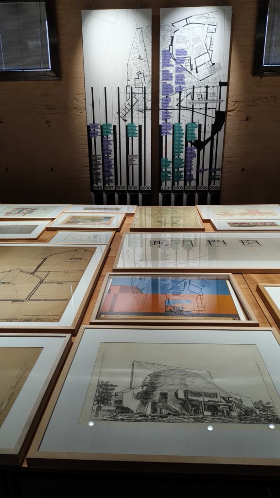 La mostra si sviluppa in quattro sale, dove su grandi tavoli sono esposti i disegni. Il corpus grafico è eterogeneo e restituisce la complessità e l’avvicendamento delle esperienze di un secolo, rivelando continuità e discontinuità nel linguaggio, nei metodi e nelle finalità del progetto: schizzi, studi urbani, diagrammi, mappe interpretative, esercizi didattici e raffigurazioni sperimentali.