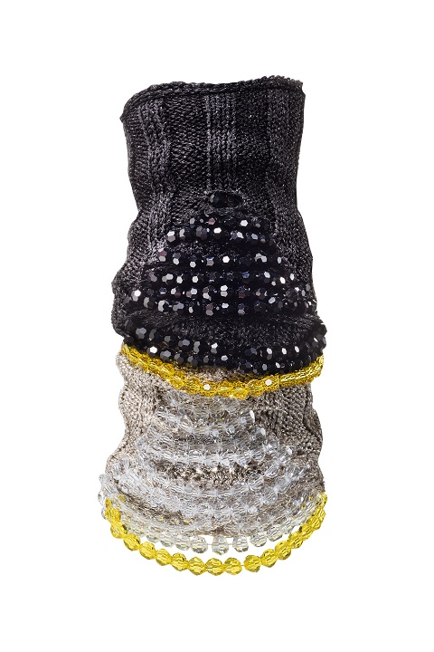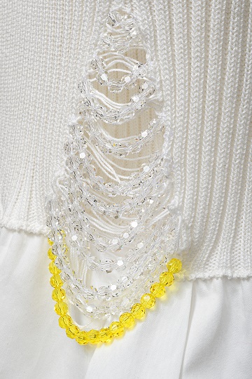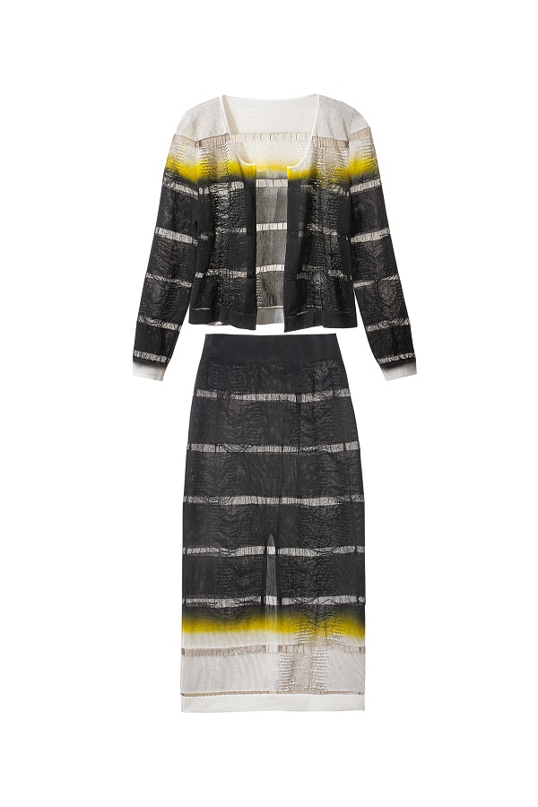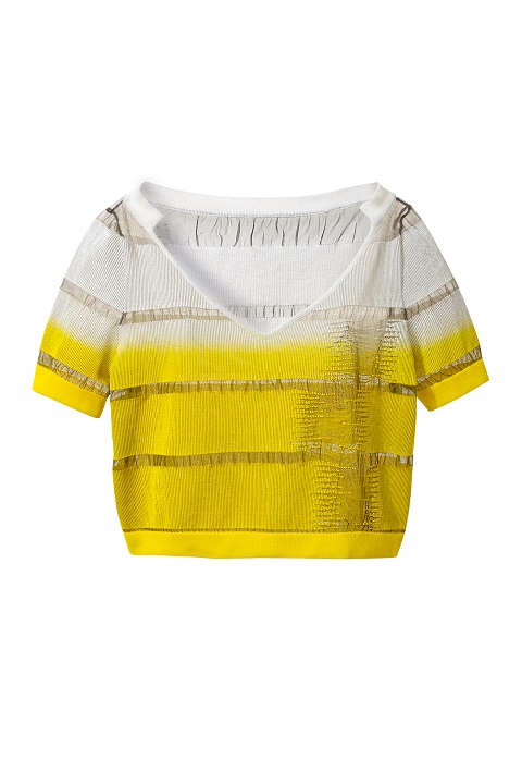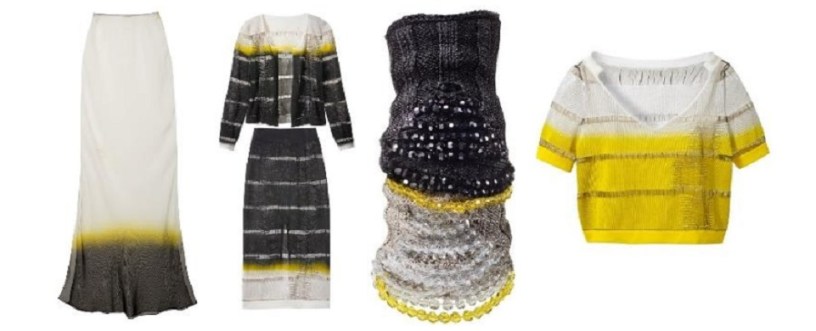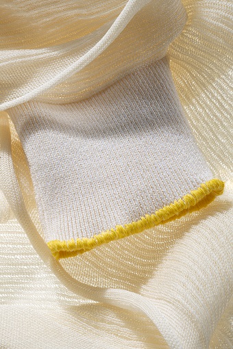 Il filo giallo si manifesta in molteplici forme – sfumature laviche, jacquard luminosi, ricami preziosi e dettagli gioiello – adattandosi a capi e accessori con coerenza e riconoscibilità.