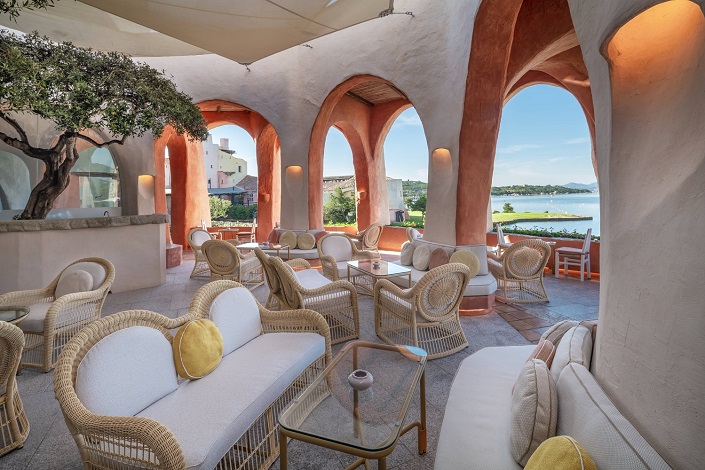 Concepito negli anni Sessanta dal rinomato architetto e scultore Jacques Couëlle, l’Hotel Cala di Volpe ha recentemente vissuto un imponente progetto di ristrutturazione, curato dagli architetti francesi Bruno Moinard e Claire Bétaille di 4BI & Associés. L’intervento ha saputo armonizzare tradizione e innovazione, combinando pareti caleidoscopiche in vetro, legno e intonaco decorato, con dettagli raffinati come la terracotta setosa e i tessuti che impreziosiscono gli ambienti.