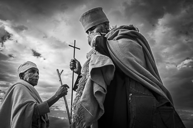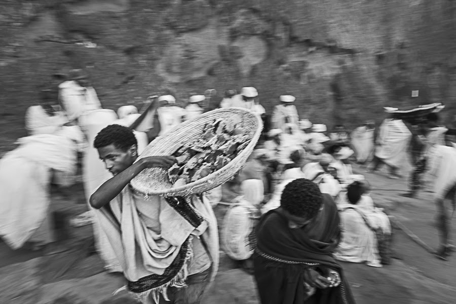 Kitcha, pani benedetti e Injera, un pane spugnoso e piatto, vengono offerti ai pellegrini nel giorno di Genna, il Natale copto.