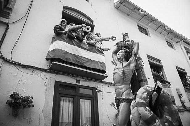 Nel deserto dell’Almeria grandi e piccoli pani a forma di ciambelle (Roscos) vengono lanciati dai balconi al passaggio delle statue dei Santi.