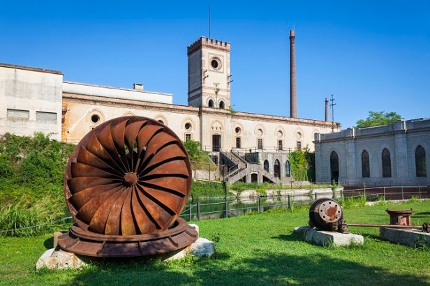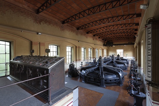 La centrale idroelettrica è un autentico gioiello di archeologia industriale, caratterizzato dalle sue turbine in ghisa e dalle eleganti decorazioni in stile Liberty lombardo. L’impianto, tuttora funzionante, è stato restaurato con grande cura e conserva elementi storici della Brown Boveri, l’imponente plancia di comando, il parquet originale e le grandi turbine del 1909 ancora in attività. Fondata a inizio Novecento per soddisfare il fabbisogno energetico del cotonificio e del villaggio, la centrale era inizialmente dotata di tre turbine Kaplan, con asse verticale e completamente immerse nell’acqua per consentire la rotazione orizzontale. Dopo essere stata dismessa nel 2009, è tornata a nuova vita grazie alla Società Adda Energi, del Gruppo Iniziative Bresciane Spa, che nel 2015 l’ha acquistata, restaurata e rimessa in funzione.
