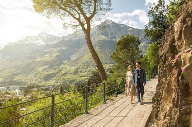 Le passeggiate di Merano sono oggi un patrimonio unico: un intreccio armonioso di sentieri immersi in una sorprendente varietà botanica, dove piante mediterranee convivono con specie alpine, creando un microcosmo naturale affascinante in ogni stagione. Accanto alla celebre Passeggiata Tappeiner, si sviluppa una rete di percorsi altrettanto suggestivi che riconducono all’idea terapeutica dal dottor Oertl (Terrainkur), pensata per coniugare movimento e salute, mentre, il romantico Sentiero di Sissi ripercorre i luoghi amati dall’imperatrice Elisabetta d’Austria, sfociando proprio ai Giardini a lei dedicati, che orlano il castello dove risiedeva durante i suoi soggiorni meranesi.