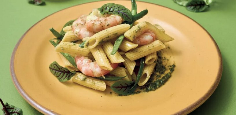 Tra i profumi dell’orto e quelli dell’oceano nasce la ricetta “Penne al Basilico, Gamberi e Fagiolini”.