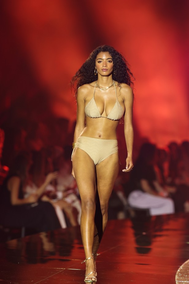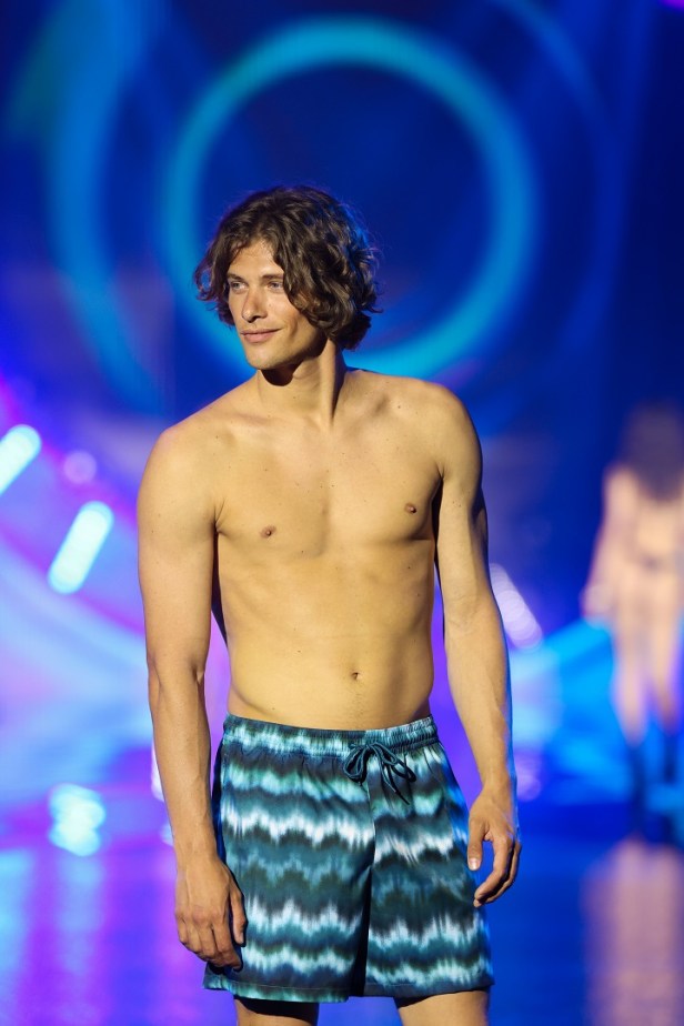 Protagonista la collezione Mare 2026, che si ispira ai paesaggi naturali attraverso una palette colori calda che si fonde a texture 3D come il crinkle, il piqué e il rib, regalando un’esperienza visiva inedita. La scena si è illuminata di bagliori glamour con tessuti shiny e lurex, capaci di catturare la luce e donare movimenti fluidi a ogni capo.