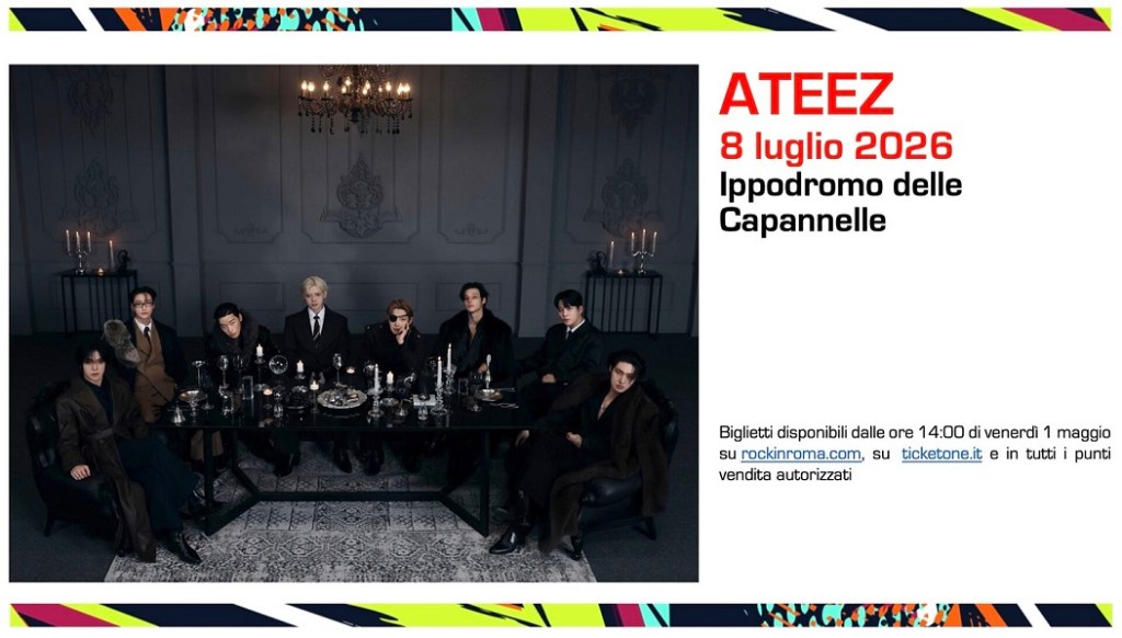 Il gruppo – formato da Hongjoong, Seonghwa, Yunho, Yeosang, San, Mingi, Wooyoung e Jongho – si esibirà a Roma per la prima volta in assoluto, segnando un debutto molto atteso nella Capitale. Guidando una line up dinamica di artisti di supporto, gli ATEEZ sono pronti a portare la loro energia travolgente, i successi in cima alle classifiche e coreografie di livello mondiale in uno dei festival musicali estivi più prestigiosi d’Italia, Rock in Roma. Noti per la loro presenza scenica esplosiva e per una fanbase globale in rapida espansione, la loro partecipazione rappresenta un momento decisivo per la continua crescita del K-pop in Europa.
