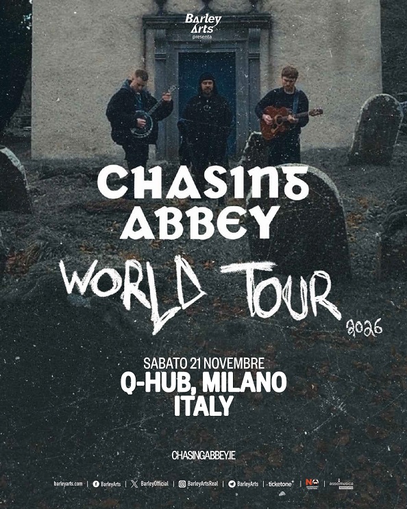 Il trio irlandese Chasing Abbey farà il suo debutto in Italia il prossimo autunno, con una serata imperdibile dedicata alla presentazione del nuovo album: sabato 21 novembre 2026 porterà al Q-Hub di Milano il suo sound originale, che fonde musica tradizionale ed elettronica. I biglietti saranno disponibili in anteprima per gli iscritti alla newsletter dell’artista dalle 11 di mercoledì 29 aprile e in vendita su Ticketone dalle 11 di giovedì 30 aprile.