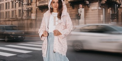 Parka da sogno in techno Sangallo: jolly d’estate firmato Rocco Ragni… con T-shirt e gonna svasata