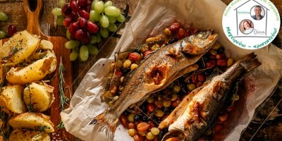 La Ricetta della Domenica: Branzino con patate schiacciate, olive e uva